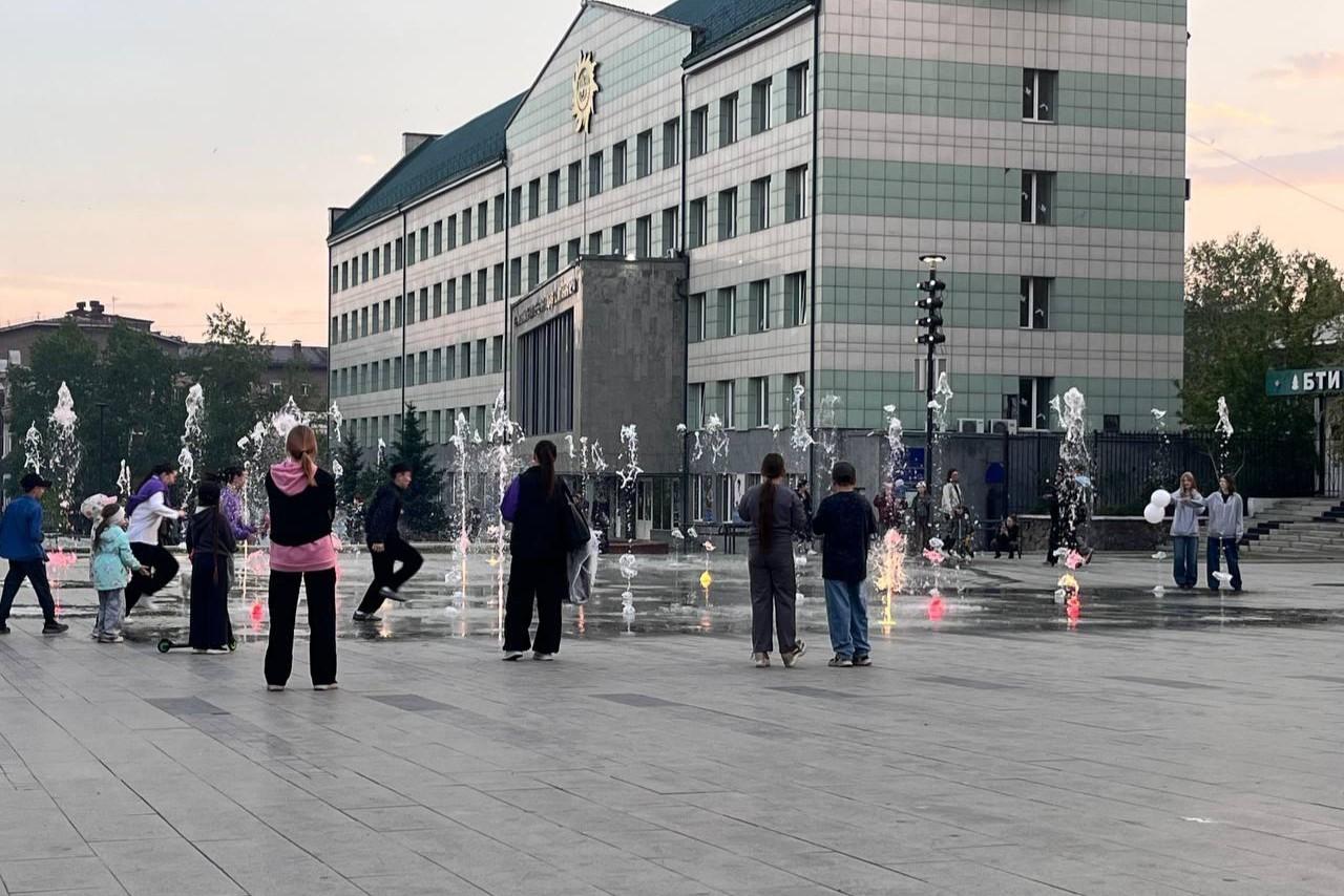 «Дети в майках под струями воды». Музыкальный фонтан на Театральной площади запустили в ЧитеВ этом году чуть позже, чем в прошлом