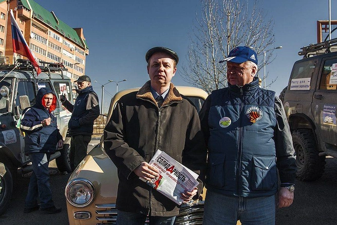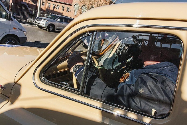 Колонна автопробега, в составе которой едет бежевая «Победа» 1950 года выпуска, стартовала 7 марта от Красной Площади и завершит пробег в Магадане.