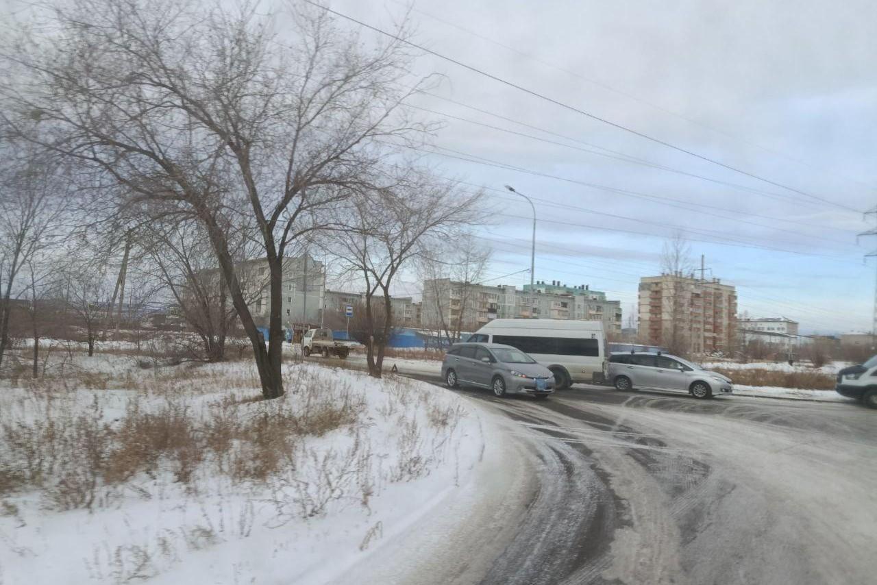 Аварию объезжают по тротуару. Маршрутка и легковушка столкнулись в ЧитеИнформации о пострадавших нет