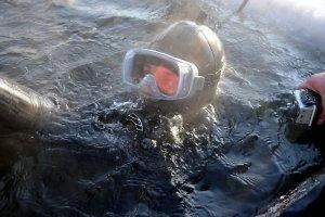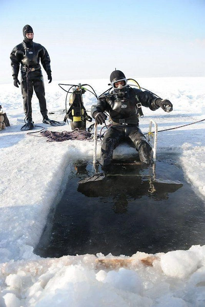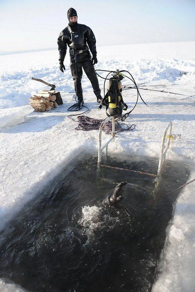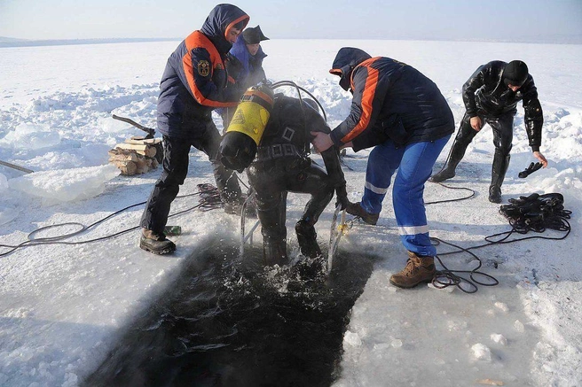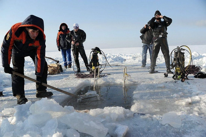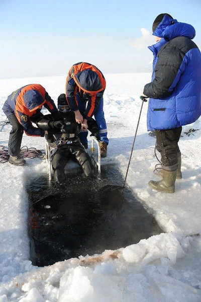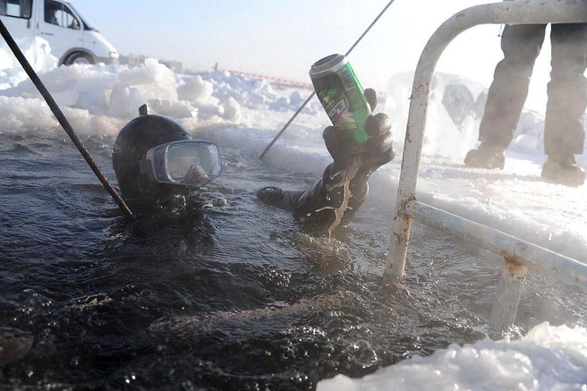 Водолазы говорят, что под водой не холодно, а сквозь лёд на глубине около 4-х метров проникает достаточно света, чтобы не пользоваться фонарями. С собой на глубину спасатели берут видеокамеру, с первого же погружения достают жестяную банку из-под пива.
