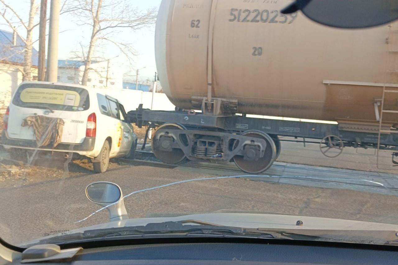 Авария с такси и поездом заблокировала ж/д переезд в ЧитеЦистерна перекрыла дорогу