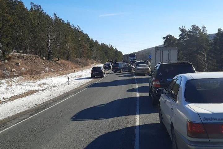 Более ста фур застряли на заснеженной трассе в Забайкалье из-за ДТПВодители говорят, что грузовик столкнулся с фурой