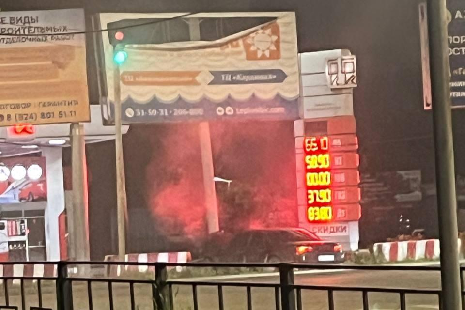 Иномарка влетела в бетонный блок у заправки в центре ЧитыОчевидцы говорят, что водитель убегал от полиции