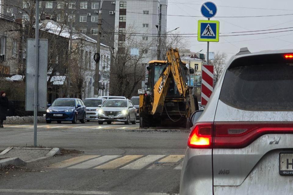 Асфальт вскрыли на улице Бабушкина, для того чтобы вернуть свет в соседние дома в ЧитеПока многоэтажки запитаны по резервной схеме