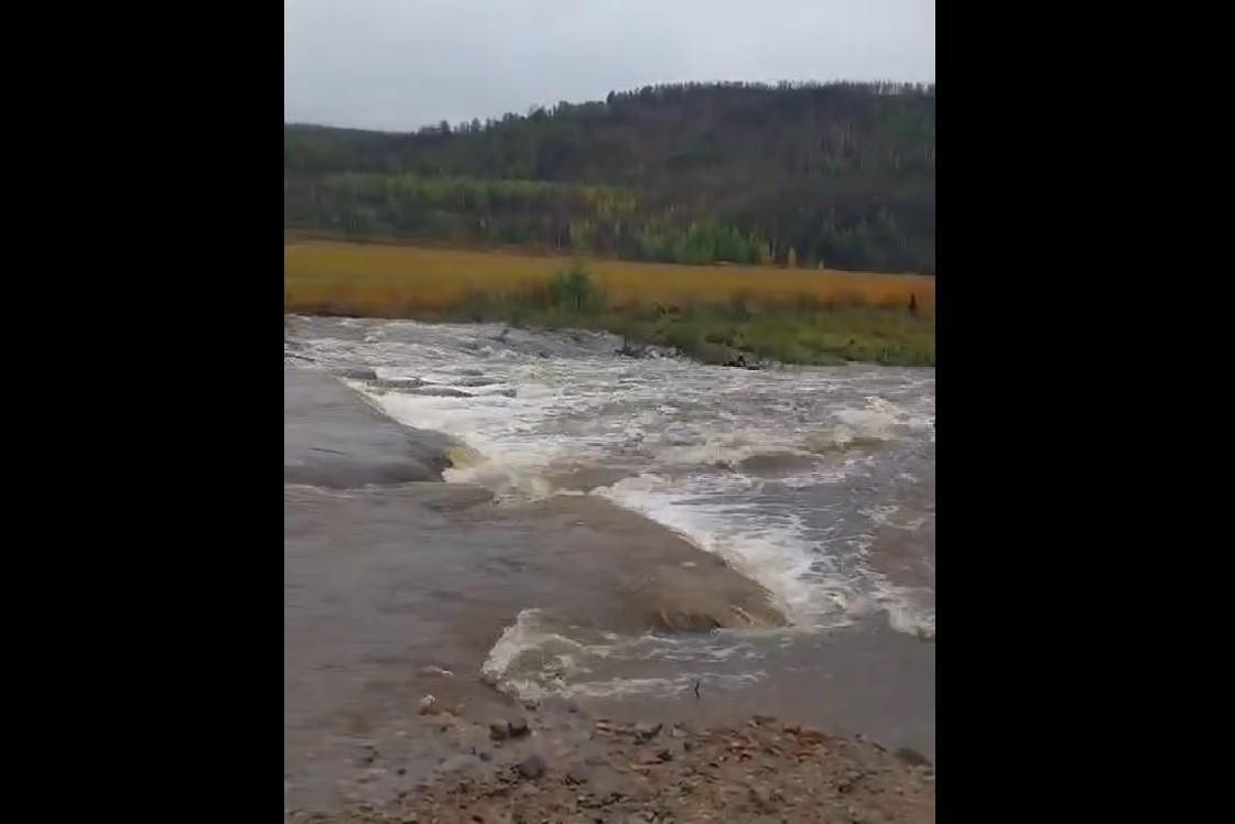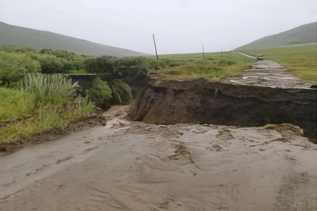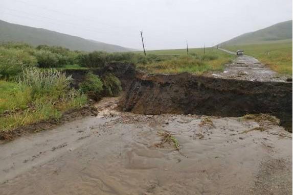 Промоина в 2 метра. Дорогу размыло между селами в ЗабайкальеТам есть объездной путь, но о его состоянии неизвестно