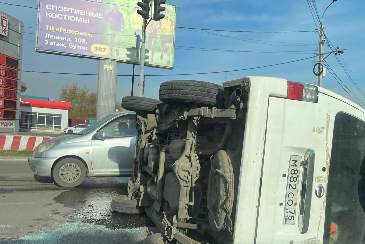 Микроавтобус перевернулся на перекрестке в ЧитеПострадал ли кто-то — неизвестно