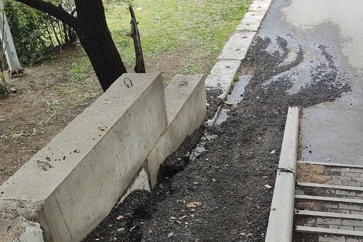 Дырявый тротуар возле Каштакского кольца залатали только спустя месяц. Сделать красиво не пыталисьЕго размыло сразу после паводков еще в начале сентября