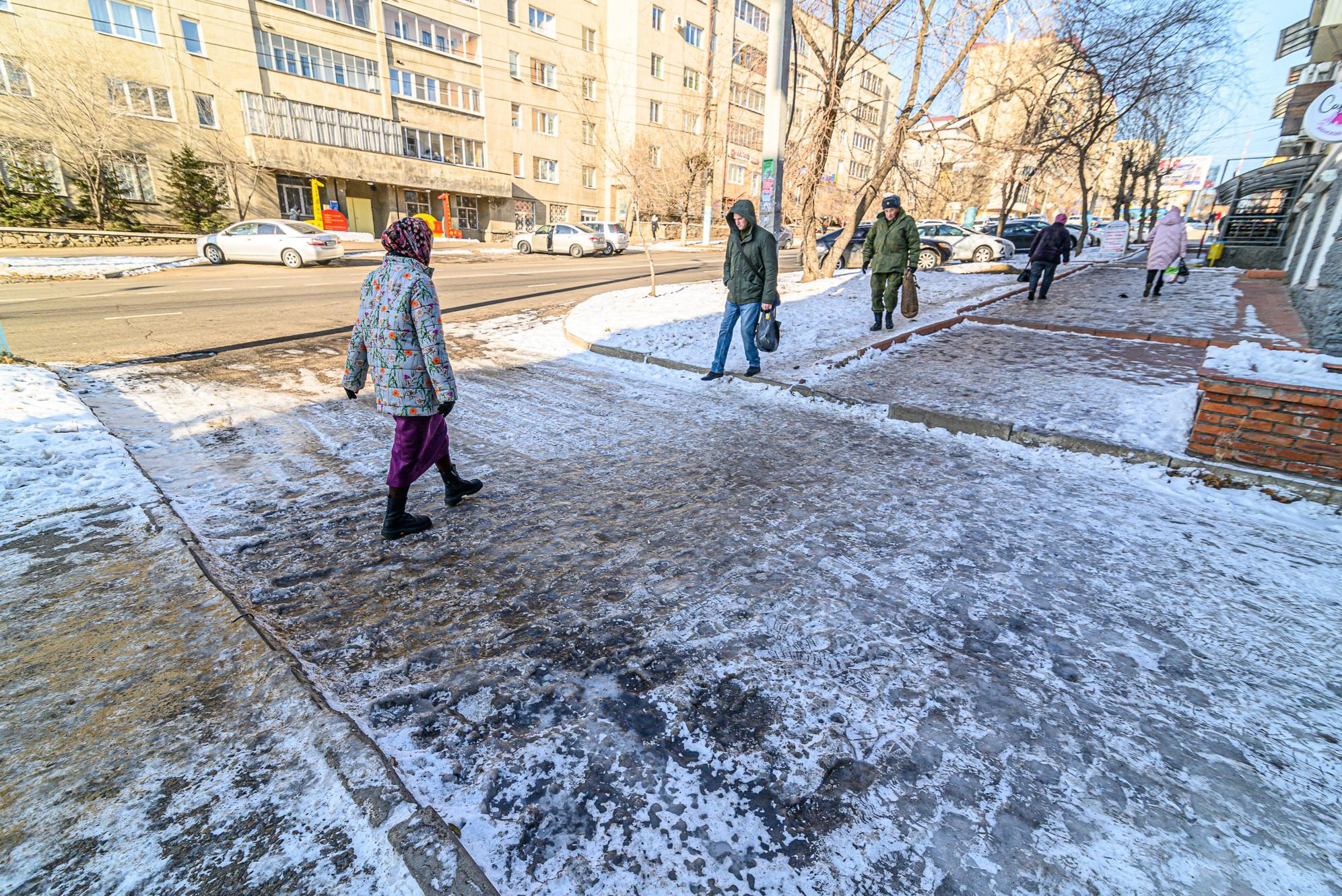 Читинцы скользят и бьются. Больше сотни человек обратилось в травмпункт из-за гололедаЕсть случаи и с переломами