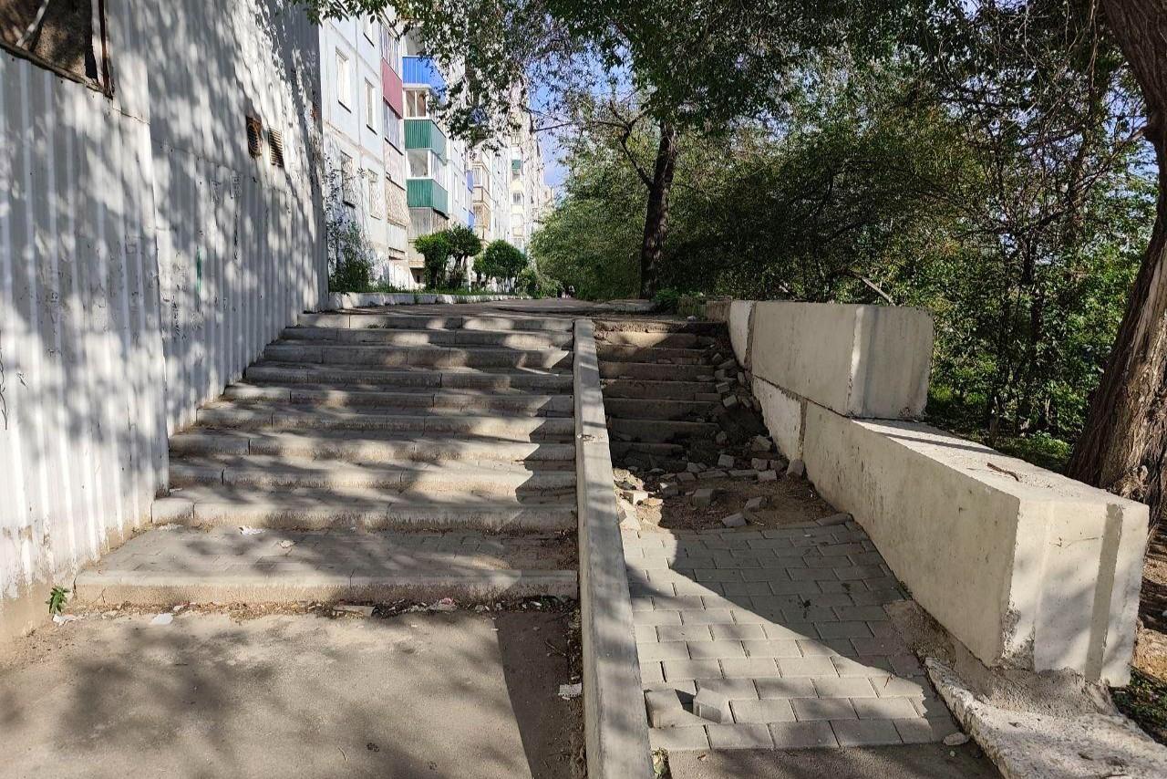 За развалившимся после ремонта пандусом в Чите проявилась лестницаБлагоустройство распалось на кирпичики