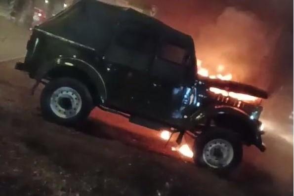 Машина загорелась на улице в Центральном районе ЧитыЕе пытались тушить проезжающие мимо мотоциклисты